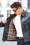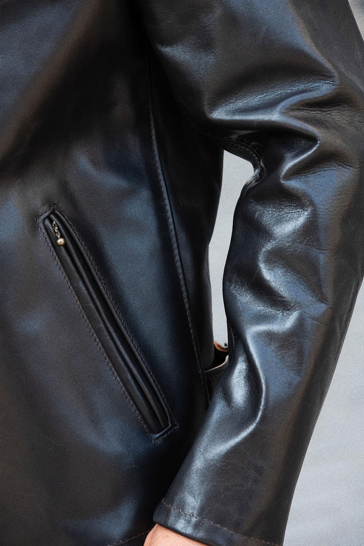The 688 Brown immediately stands out for its extra-thick cowhide leather, with a firm hand and slightly satin finish. Its regular fit provides optimal support without compromising elegance. Featuring a classic shirt collar, it reinterprets the codes of vintage biker style in a sleek, assertive version. It has a sturdy metal zip closure engraved with Schott NYC, a leather pull tab, three zippered outer pockets (including one slanted chest pocket), and a buttoned inner pocket. The lower back can be adjusted with metal buckle tabs, and the cuffs have zippers for ease of use. The inside is lined in plaid cotton for year-round comfort, with polyester lining in the sleeves. Made in the USA, this jacket showcases Schott’s unmatched artisanal quality.
