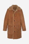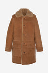 Tillverkad Den här jackan är gjord av fårskinn i mocka och har ett rakt snitt som anpassar sig till alla kroppsformer. Den har en knäppning, två stora lappfickor med lock och en krage i naturlig fårull, som erbjuder optimal isolering. Längden på mitten av låret och de långa ärmarna med synliga sömmar framhäver dess sofistikerade utseende. Det inre fårskinnsfodret ger extra värme, vilket gör denna jacka till ett idealiskt val för höst och vinter.