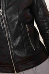 Upptäck JOLYA LAMB VITA BLACK svart lammskinnsbikerjacka för kvinnor, en tidlös klassiker som kombinerar elegans och djärvhet, för en resolut biker och raffinerad look.