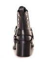 De exakta och bearbetade tekniska detaljerna imponerar i hela strukturen. Vi finner ett spår ultra feminin och en övertygande svart färg. Ovandeln i läder åtföljer en yttersula i gummi. Hälen kommer att höja dig 6 cm över marken. En hederspunkt läggs på detaljerna. Vi älskar hans sida. utan snören och dess metallnitar arrangerade med millimeterprecision. Många dekorativa flänsar tillhandahålls. De är gjorda av remmar i midjan. metallspännen samlade runt en metallring.