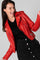 I röd färg har denna återbesökta perfecto en scooped krage. godkänd av runda metallnitar. Den stängs med en off-center metalldragkedja. åt vänster. Två epaletter pryder axlarna, medan midjan är dekorerad med metalldragkedjor som sys i midjan. horisontell. De två sidfickorna har dragkedja liksom ändarna på de långa ärmarna. Fickan på det invändiga fodret har även dragkedja.