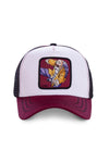 Denna keps kommer att passa både män och kvinnor. Den erbjuder en originell kontrast mellan vitt och vinrött. Dess frontpanel i 100 % bomull är vit och dekorerad. från en patch till en bild av Awesome Turtle, legendarisk karaktär från den japanska mangan DBZ. Karaktären är i full action på en vinröd bakgrund som harmonierar med omgivningen. färgen på visiret. Baksidan av denna kvalitetshuvudbonad är gjord av andningsbart textilnät, vilket gör den väldigt behaglig att bära. att bära. Den snapback-typ stängning som för; det kommer att tillåta locket att anpassa sig till varje vändning av huvudet.