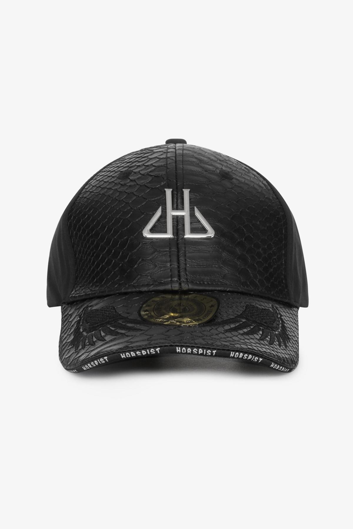 Har 6 paneler, dess keps är broderad med märkesnamnet precis ovanför justeringsspännet som låter dig justera huvudets omkrets. Kronan och visiret är dekorerade i ett mycket chict utseende av reptilskinn. Märkets logotyp är pläterad. präglad på kronan, medan visiret är dekorerat med vingar och ett märkesmärke. Namnet Horspist är tryckt på väggen. i vattenstämpel framsidan av visiret.