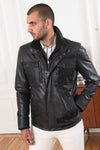 Jackan är gjord av fårskinn. Detta läder är smidigt och mycket motståndskraftigt.