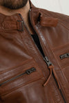 Balboa är en jacka som lätt kan bäras med jeans. Dess cognacfärg smälter perfekt med mörka färgnyanser som marinblått och svart.