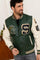 Denna jacka är väldigt chic och uppfyller kraven för en teddy med sin ribbade krage som matchar ändarna på de långa ärmarna och framtill. storleken. Huvuddelen är grön medan ärmarna är benvita. Ett snyggt färgschema som är typiskt för kunnandet hos denna legendariska amerikanska skoljacka. Metalltryckknappar säkrar stängningen längs axeln och två raglanfickor pryder varje sida.