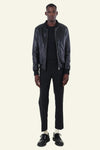 BONBON BLACK jackan av Serge Pariente är gjord av högkvalitativt fårläder, som erbjuder en slät struktur och ett glänsande utseende. Dess slimfit snitt framhäver den maskulina siluetten samtidigt som den garanterar optimal komfort. Denna modell utmärker sig för sina noggranna ytbehandlingar: ribb i krage, midja och ärmar, samt eleganta stickningar på rygg och ärmar. De två utvändiga fickorna med blixtlås med silvermetallicdetaljer ger en modern touch till denna tidlösa klassiker. Bomullsfodret säkerställer mjukhet och komfort vid varje slitage.