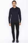 Navy blue cotton and wool polo neck sweater - Image n°3