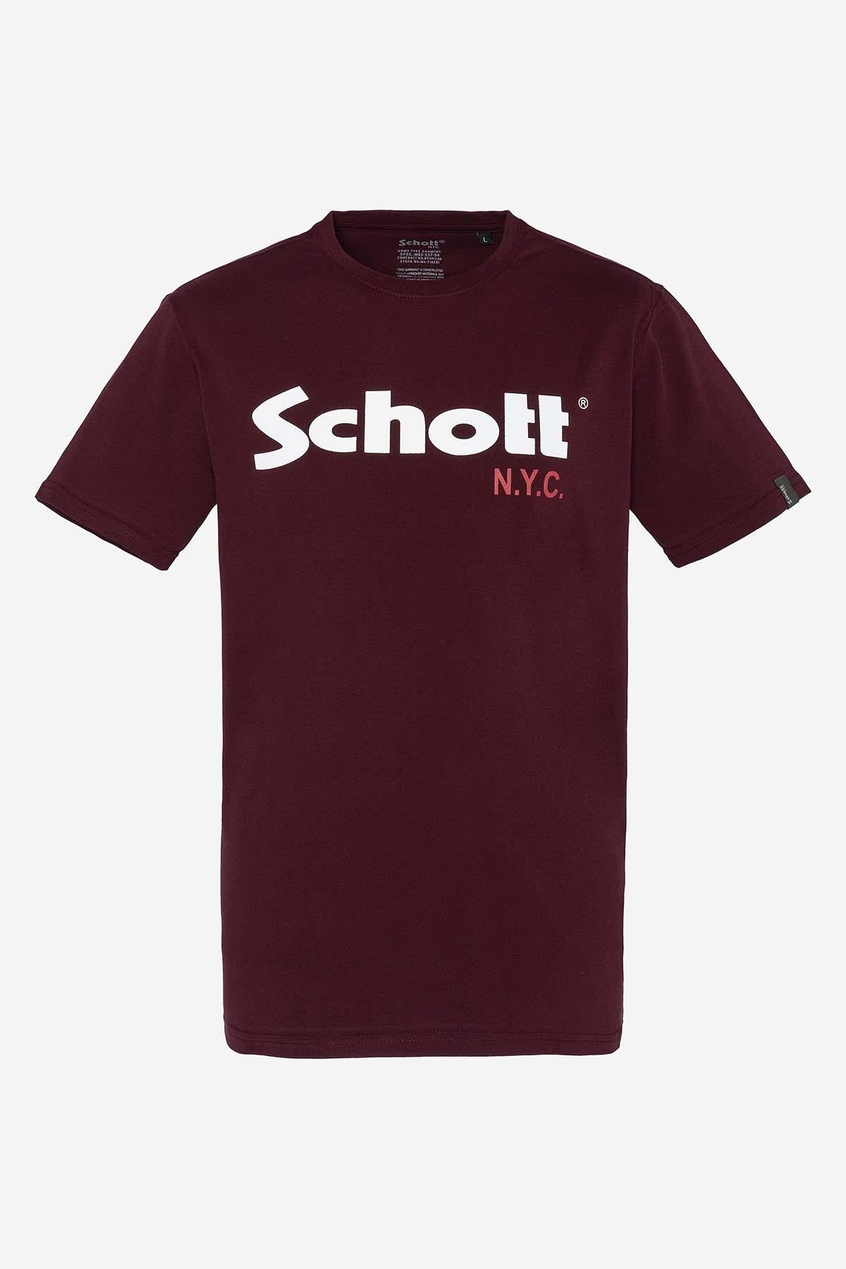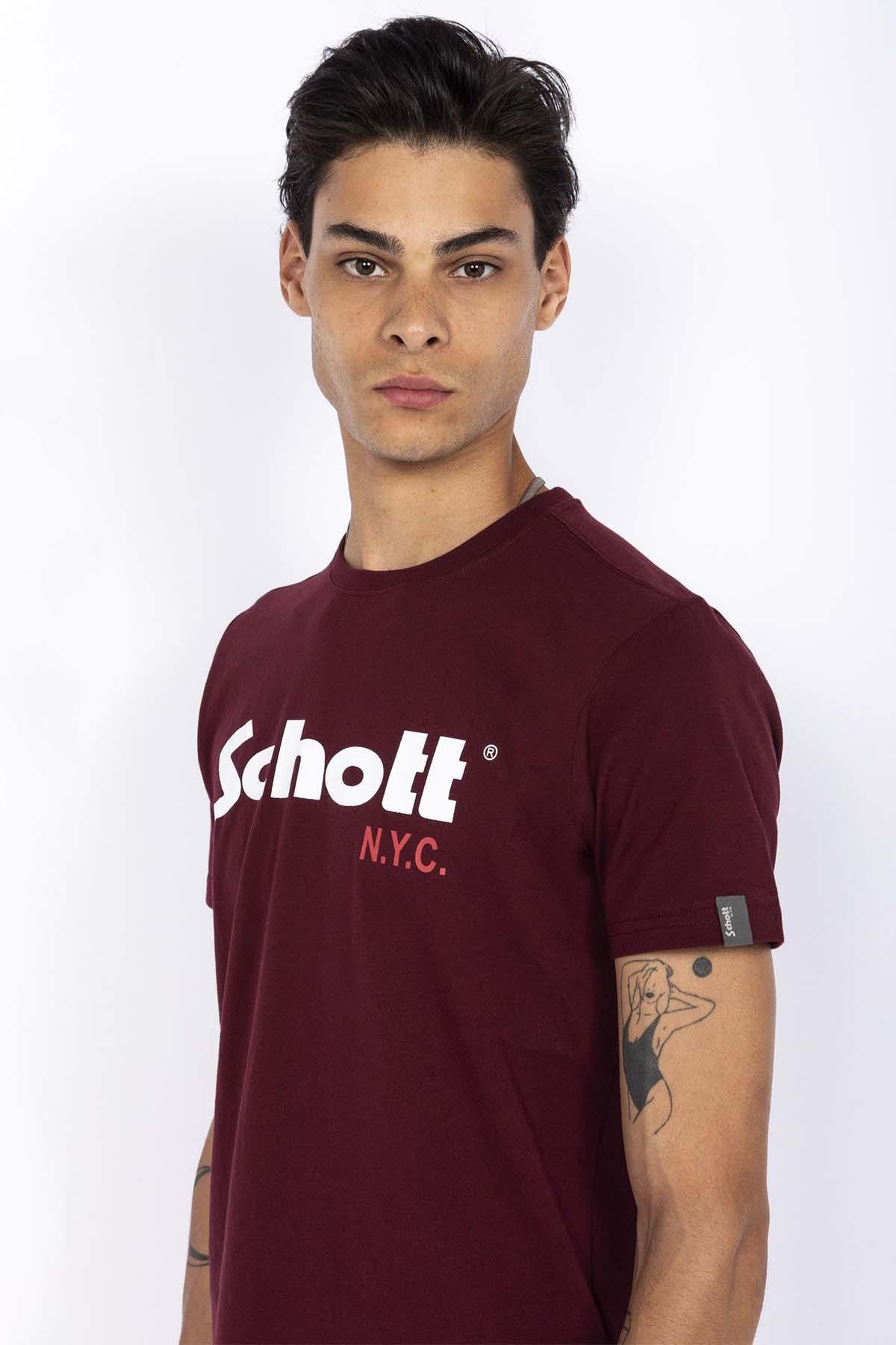T-shirt herr Schott TS01MCLOGO KAKI/BORDEAUX