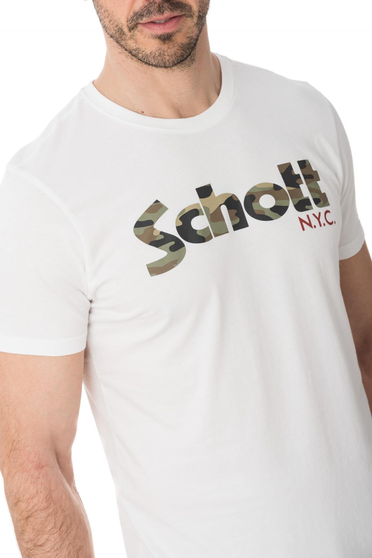 Plain white t-shirt with camouflage Schott logo - Image n°4