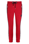 Dessa röda joggingbyxor framhävs av varumärket skrivet i strass längs varje ben.