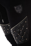 Horspist pryder dessa joggingbyxor med mycket vacker konstläder quiltning på framsidan samt nitar och en snygg dragkedja.