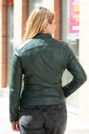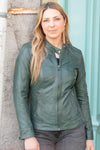 This women’s leather jacket with a biker collar, the ISABELA GREEN by Cityzen, stands out with its urban edge and flattering slimfit cut. Made from green lamb leather, it blends bold character with femininity for a modern, all-season look.