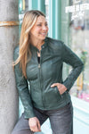 The ISABELA GREEN jacket adapts effortlessly to a wide range of styles and occasions. Its subtle yet original green shade pairs beautifully with neutral tones like beige, black, or denim. Wear it over a flowy dress or with skinny jeans or tailored trousers, with or without heels. Thanks to its light cotton lining and structured fit, it can be layered under a coat in winter or worn solo on milder days. A modern must-have for women seeking both style and versatility in leather.