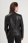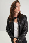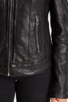 Denna JODYTA LAMB VITA damjacka från det franska konfektionsmärket DAYTONA är en pärla. Denna svarta jacka omformar den feminina kroppen med sina två sidofickor med blixtlås och de två andra fickorna med dragkedja ovanför bröstet. Mandarinkragen Enkeltryck, fina quiltade axlar och olika sömmar gör denna jacka till bikerjackan som ger dig en snygg look. Denna lammskinnsjacka med vegetabilisk garvning bärs bäst med en vit t-shirt och svarta jeans. Du vet att svart läder går lätt med ett brett utbud av färger så att du kan ge fritt spelrum till din stil. din fashionista-fantasi. Port öppen eller stängd, denna jacka garanterar att vara chic för alla årstider.
