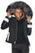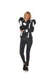 Denna polyestermodell är utsmyckad med... inlägg i vitt lammskinn som kontrasterar fint mot varandra. med jackans svarta.