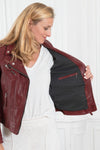 Dess superbt skräddarsydda krage framhäver den återbesökta perfecto-stilen. med mästerskap av det berömda franska märket. Det är en kort jacka skräddarsydd efter dina behov. i ett oemotståndligt tilltalande slimfit-snitt. Lädret är förfinat och förstärkt av vackra metalliska ytskikt. Kragen har dekorativa tryckknappar och 3 framfickor. Metalldragkedjor finns på framsidan. Den centrala stängningen är asymmetrisk. Fodret är mjukt och har en ficka med dragkedja. De vackra läderdragarna som livar upp dragkedjorna bidrar till den här trendiga jackans exceptionella design.