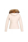 Leather sportswear down jacket with fur-lined hood - Image n°1