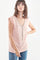 Denna feminina t-shirt är genomskinlig baktill och har korta ärmar med muddar. V-ringningen är prydd med pärlor som faller på bröstet som ett halsband. Den lilla märkesetiketten sys diskret på sidan av skon. precis nedanför.